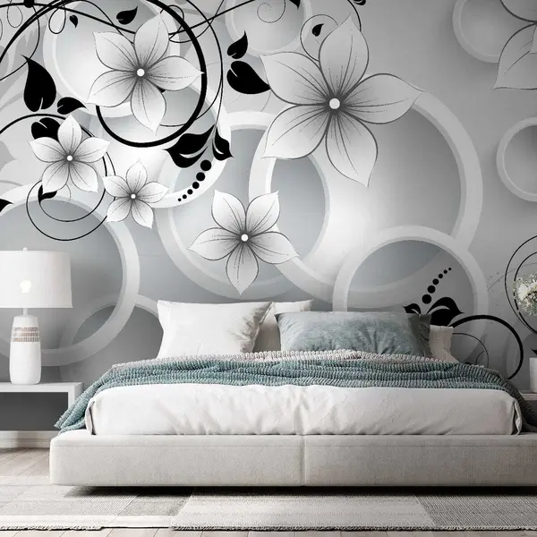 Murais de parede Flores brancas e vinhas negras Nr. u37888