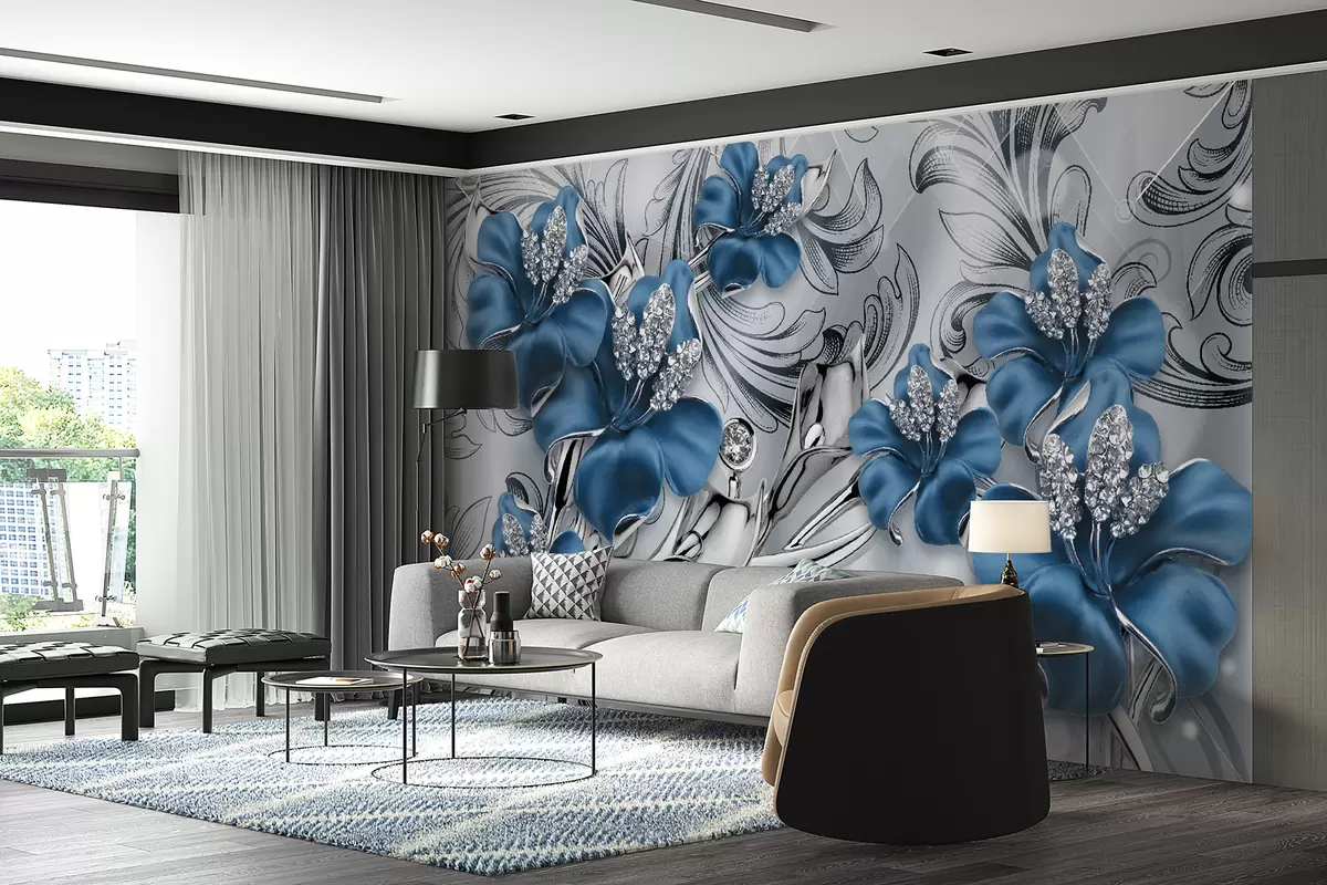 Murais de parede Flores azuis Nr. u60405