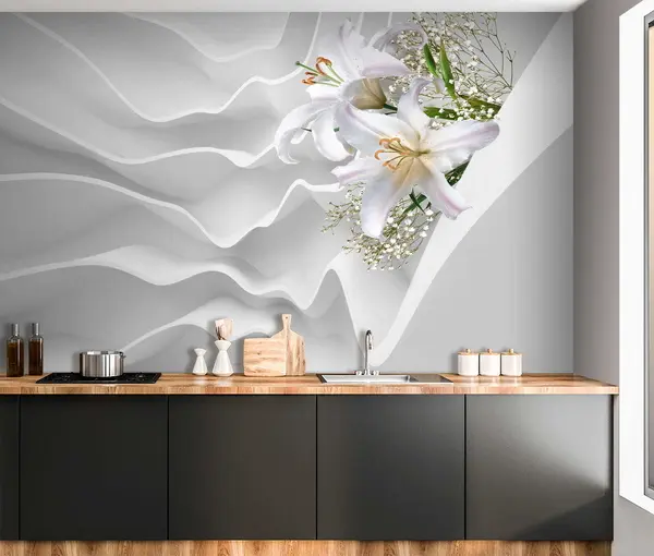 Murais de parede Lírios e parede texturizada Nr. u60451