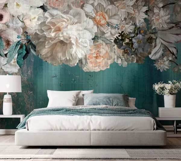 Murais de parede Grande exuberante buquê de flores com textura grunge Nr. u95430