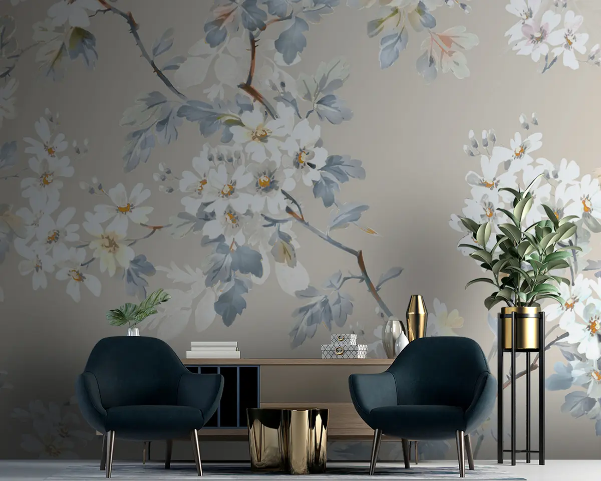 Murais de parede Flores e borboletas pintadas à mão com aquarelas Nr. u97114