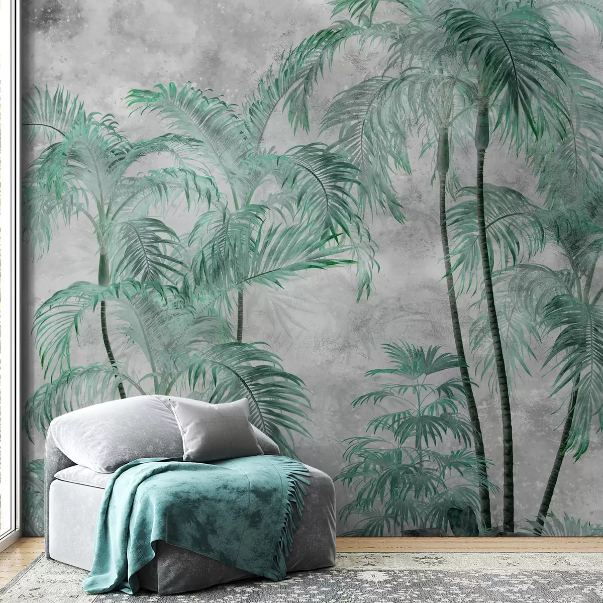 Murais de parede Palmeiras tropicais num muro de betão Nr. u98586v1