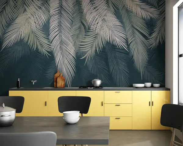 Murais de parede Folhas de palmeira em um fundo verde escuro Nr. u48556v2