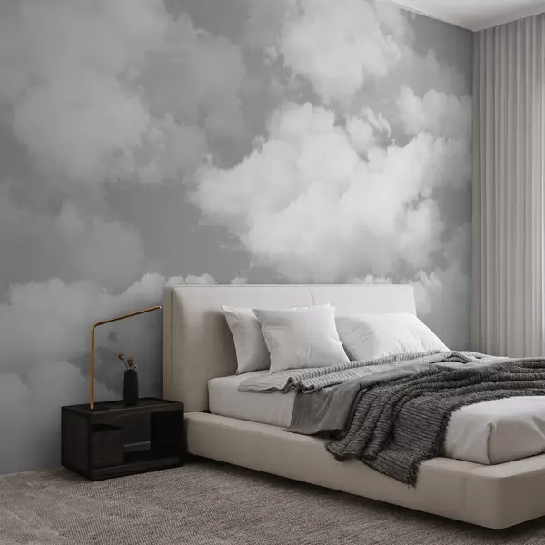 Murais de parede Nuvens brancas em um céu cinza são uma nova tendência no interior Nr. u94178