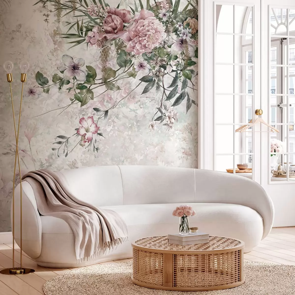Murais de parede Flores vintage na parede de mármore Nr. u97046