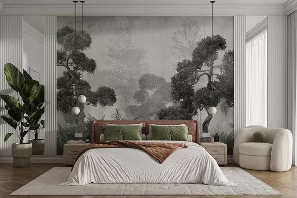 murais de parede Árvores tropicais e folhas em uma floresta enevoada u95901
