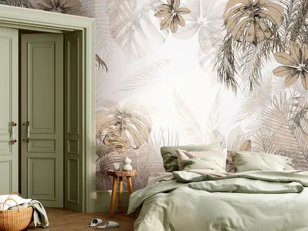 Murais de parede Árvores tropicais e folhas na floresta em um fundo branco Nr. u96472