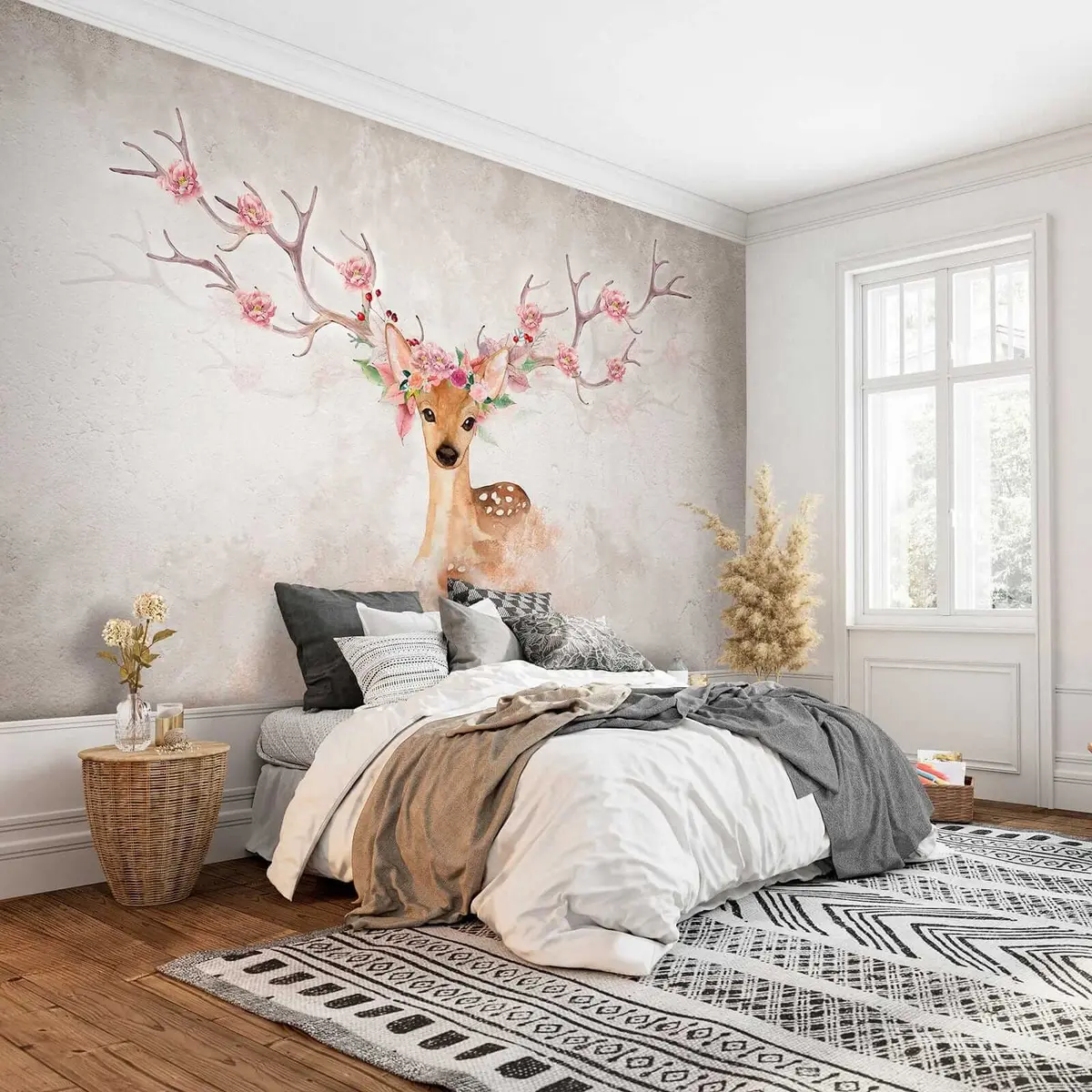 Murais de parede Veado com flores nos chifres Nr. u04671
