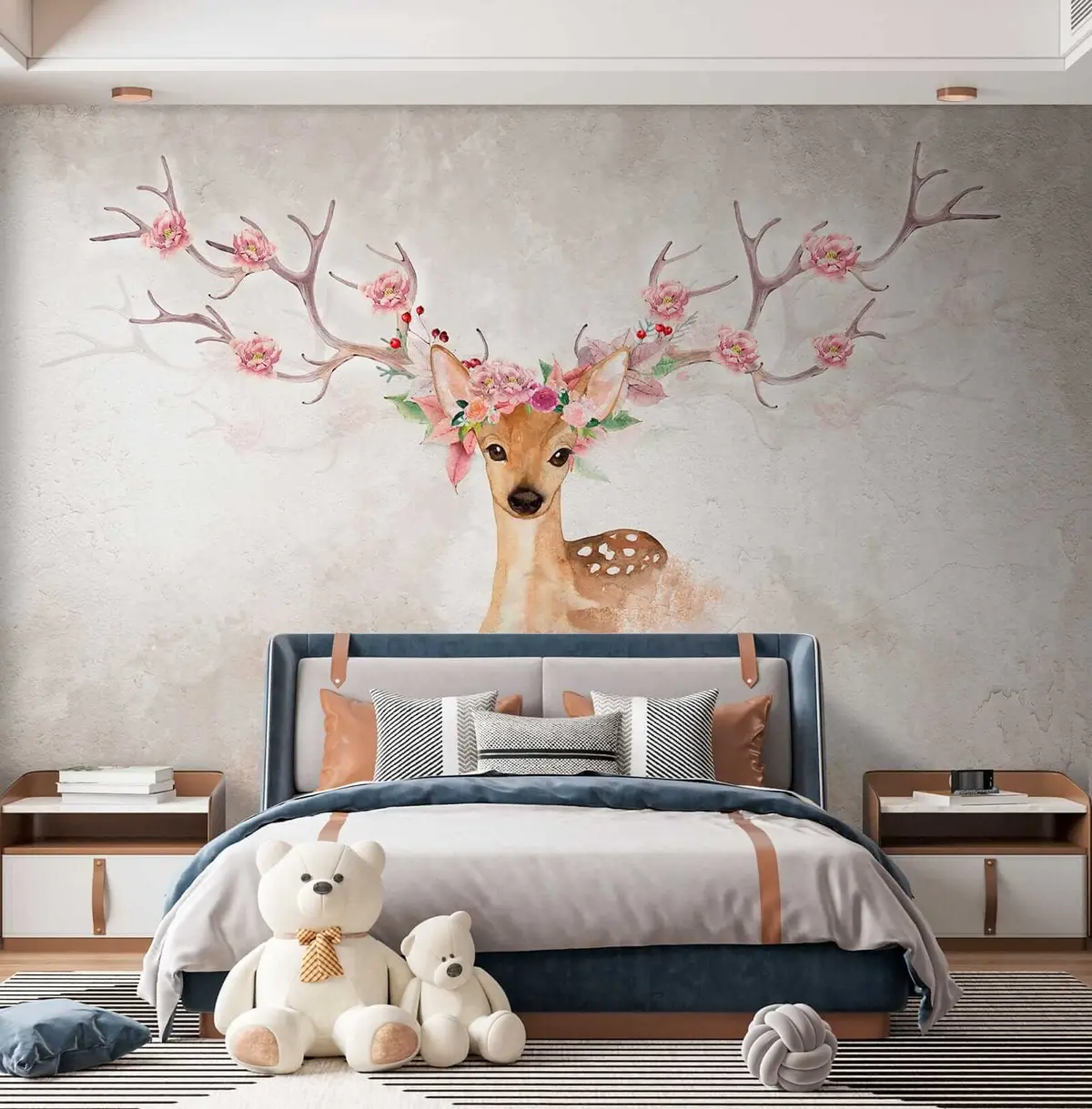 murais de parede Veado com flores nos chifres u04671