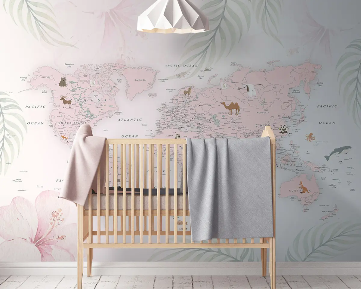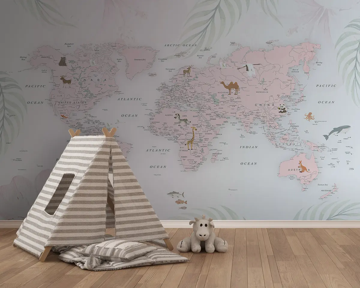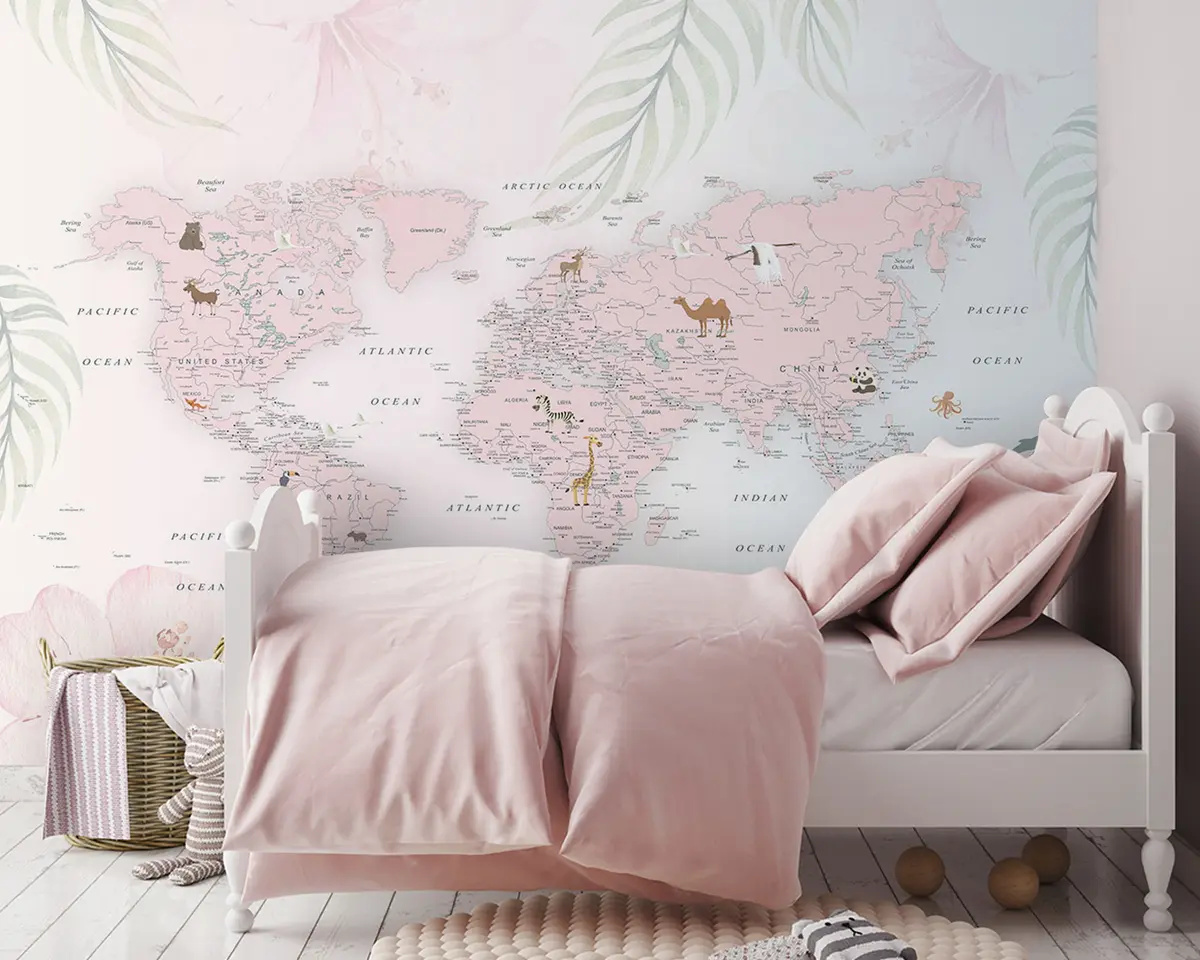 Murais de parede Mapa do mundo para meninas em estilo rosa Nr. u79832