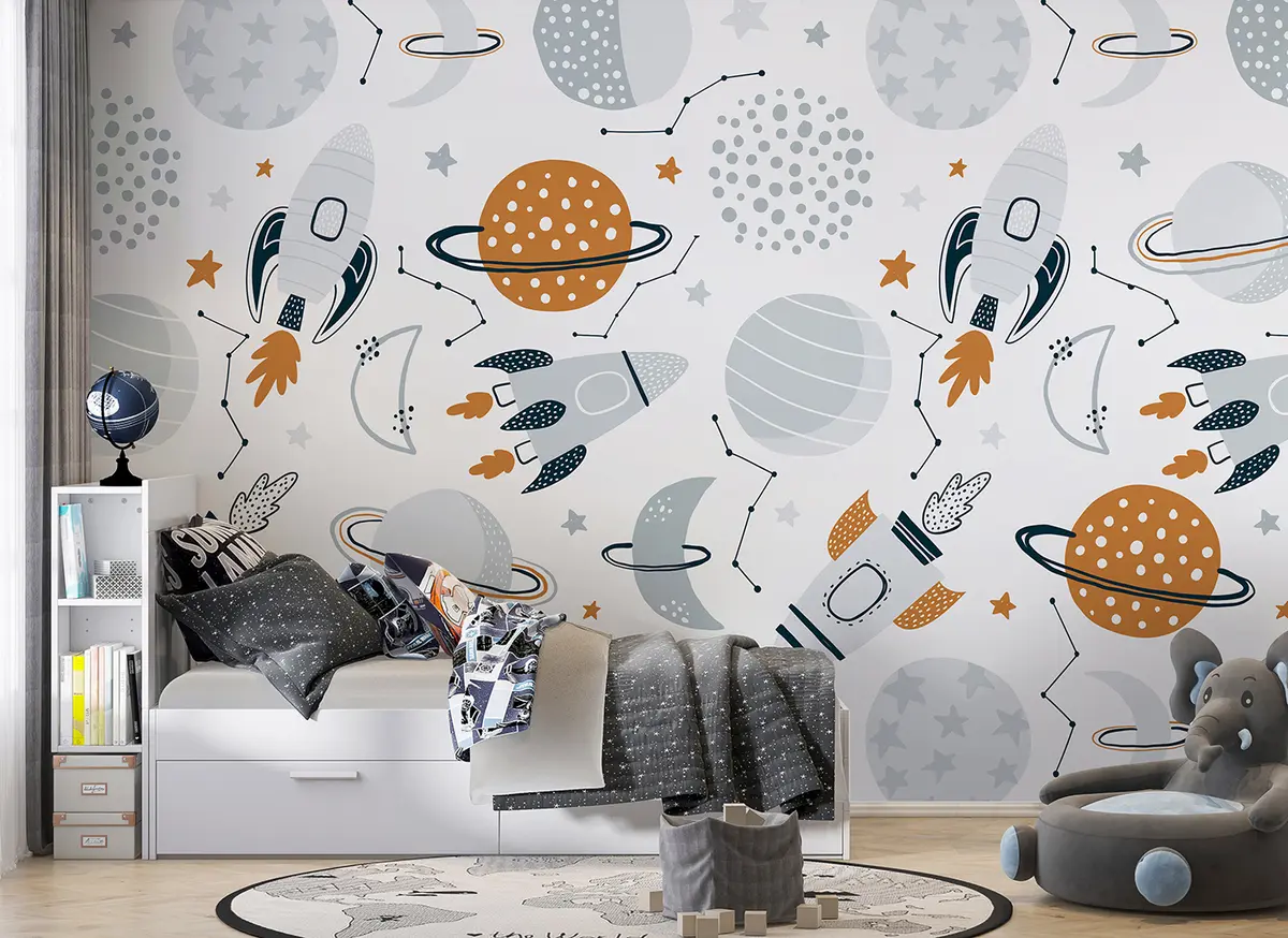 Murais de parede Espaço com planetas, estrelas, constelações, foguetes, naves espaciais Nr. u96582