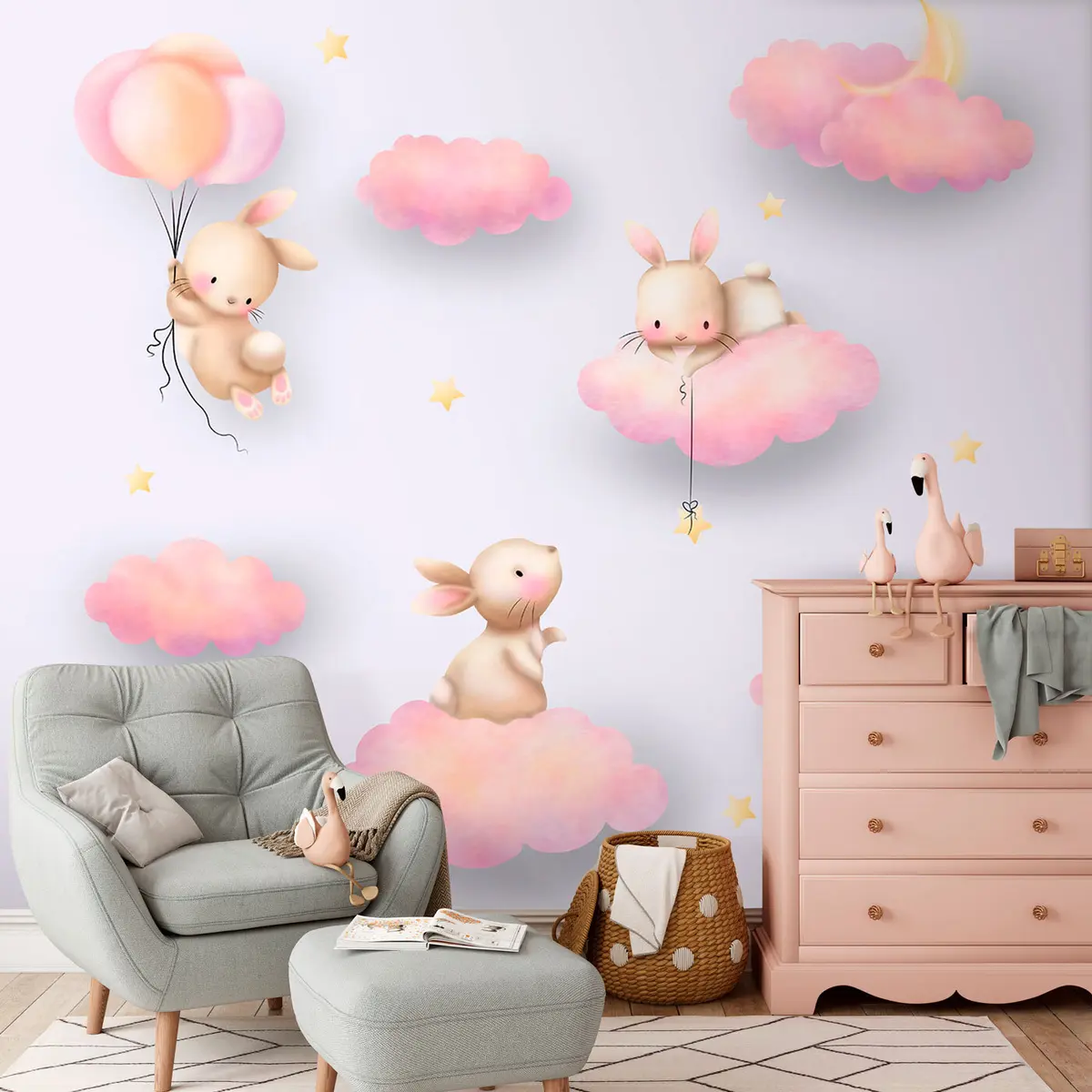 Murais de parede Coelhinhos nas nuvens no estilo infantil Nr. u96613