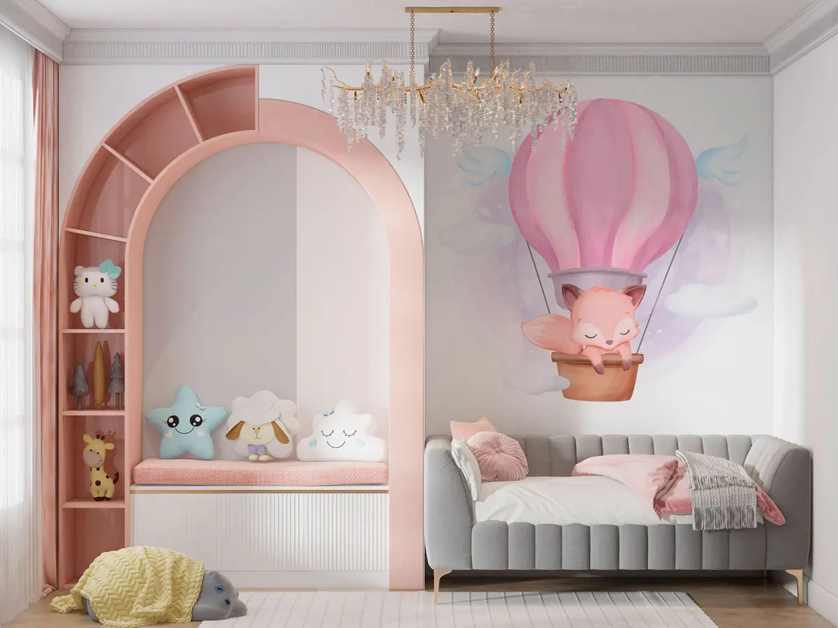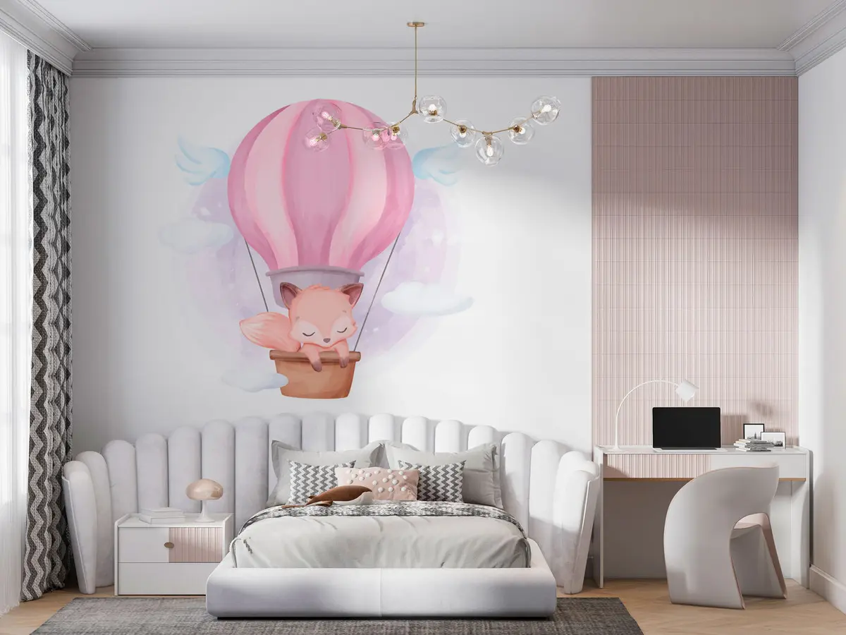 Murais de parede Ilustração de uma raposa em um balão de ar quente Nr. u97395