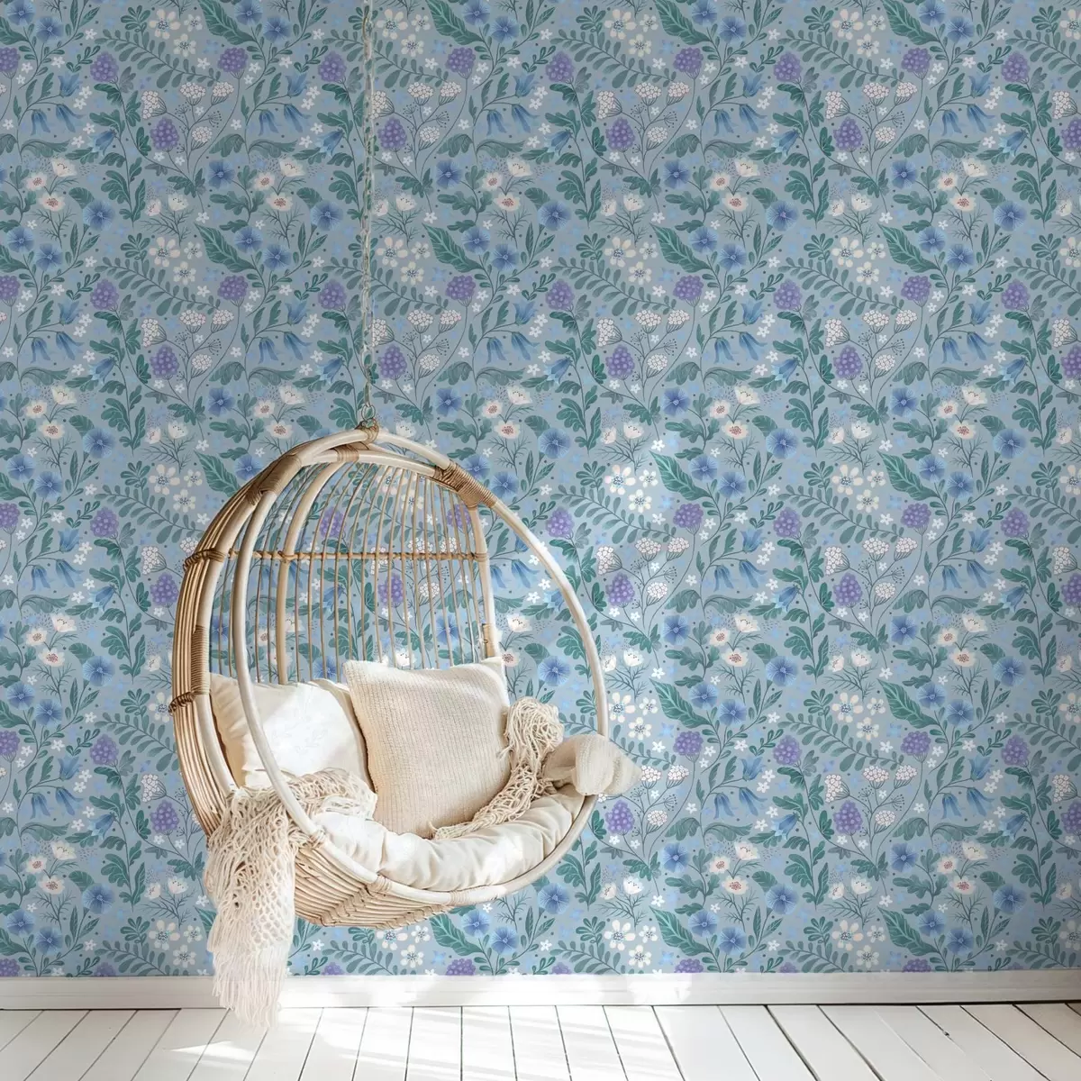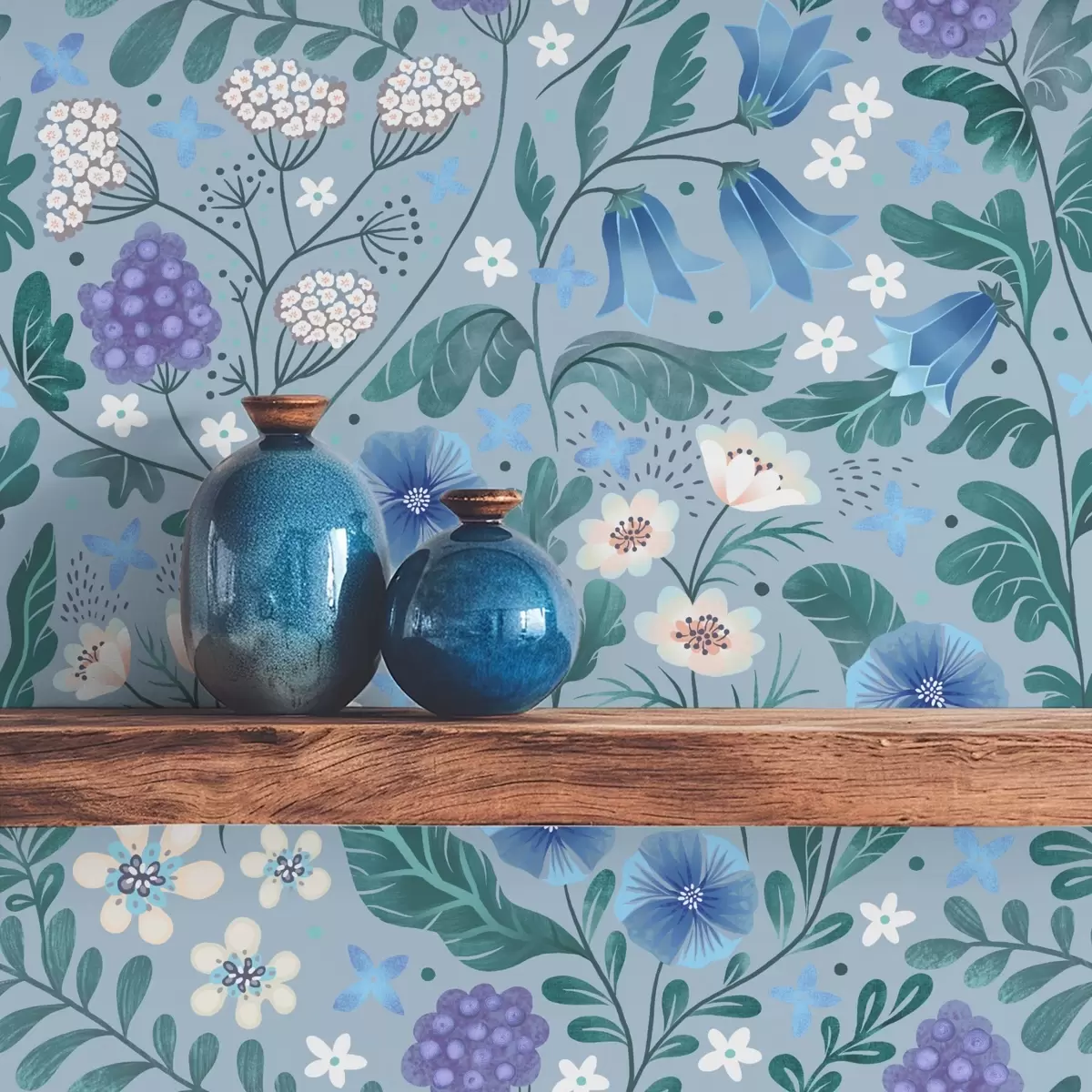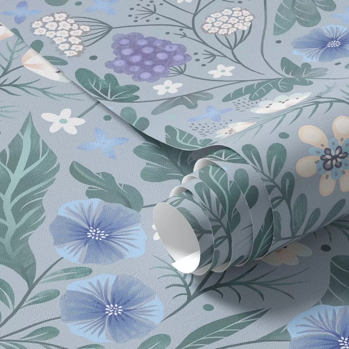 Papel de parede Flores silvestres e bagas sobre fundo cinza-azulado Nr. a00849v1