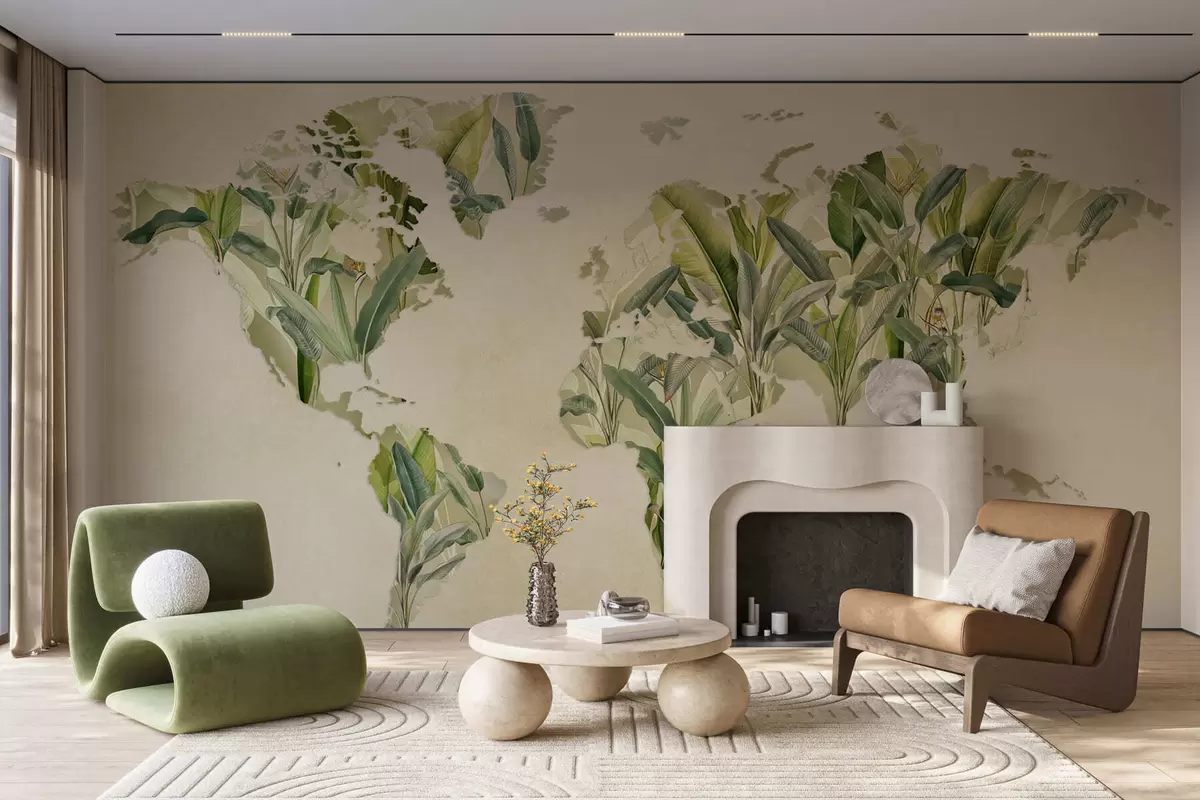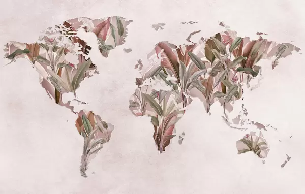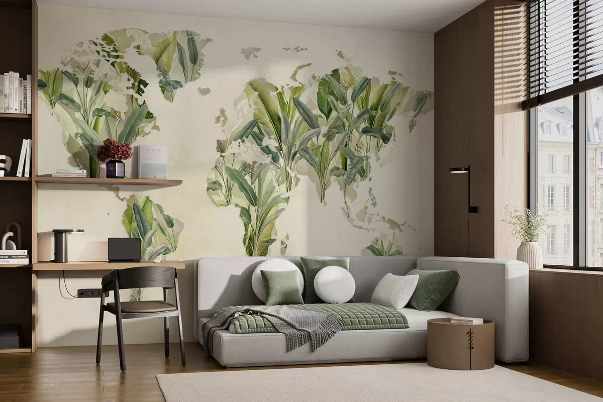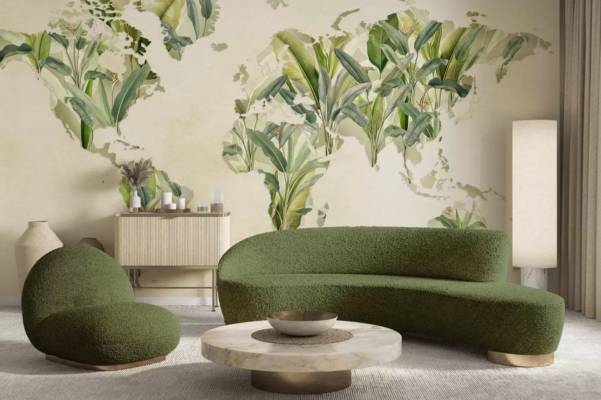 Murais de parede Um mapa verde do mundo feito de folhas de bananeira Nr. c00007