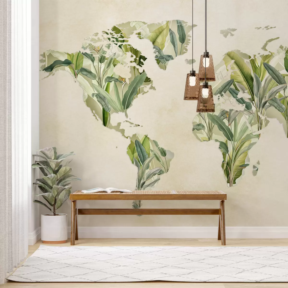 Murais de parede Um mapa verde do mundo feito de folhas de bananeira Nr. c00007