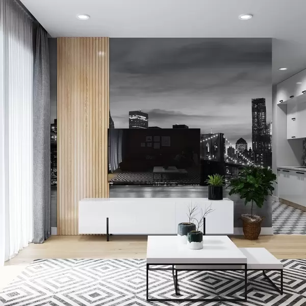 Murais de parede Linha do horizonte da cidade ao crepúsculo em monocromático Nr. u55510