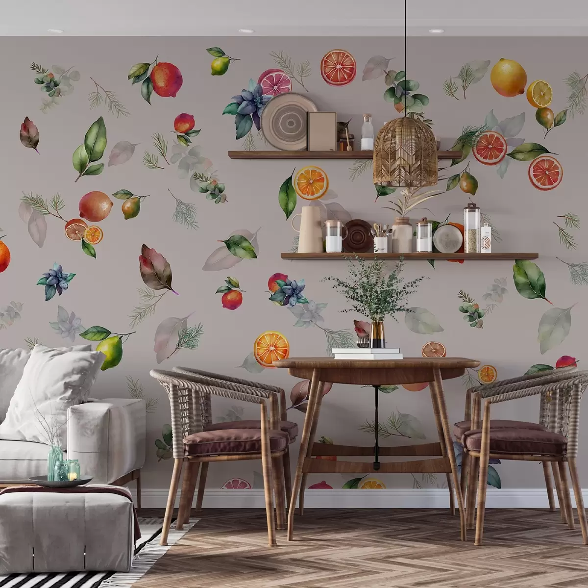 Murais de parede Padrão de frutos e folhas coloridos Nr. u98770v1