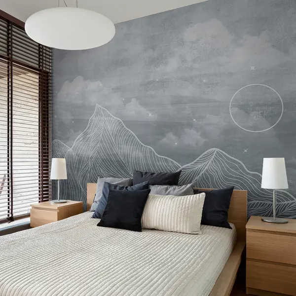 Murais de parede Textura Grunge com nuvens e montanhas, cor cinzenta, arte com tema da natureza Nr. u98838v1