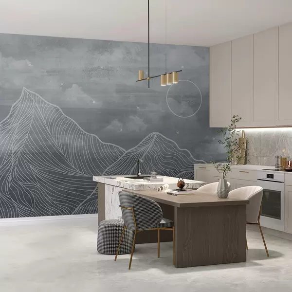 Murais de parede Textura Grunge com nuvens e montanhas, cor cinzenta, arte com tema da natureza Nr. u98838v1