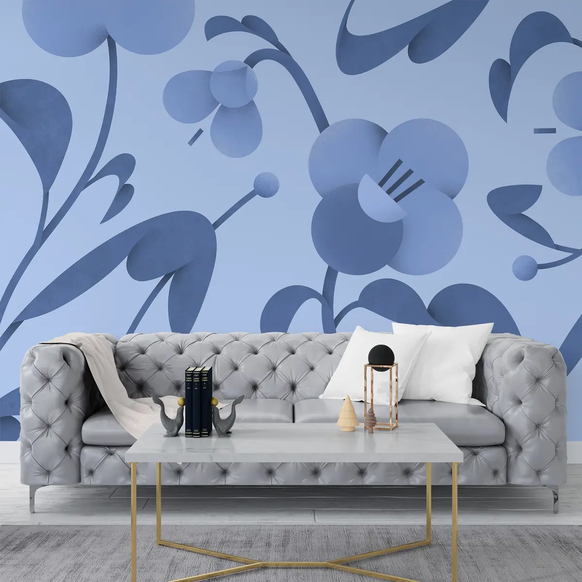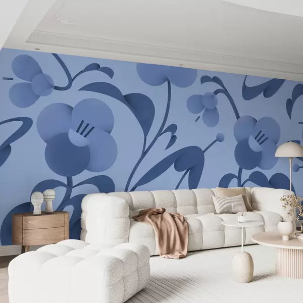 Murais de parede Estampado botânico com flores decorativas em azul Nr. u99196v8