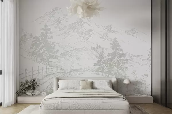 Murais de parede Paisagem serena de montanhas e árvores Nr. u99572v1