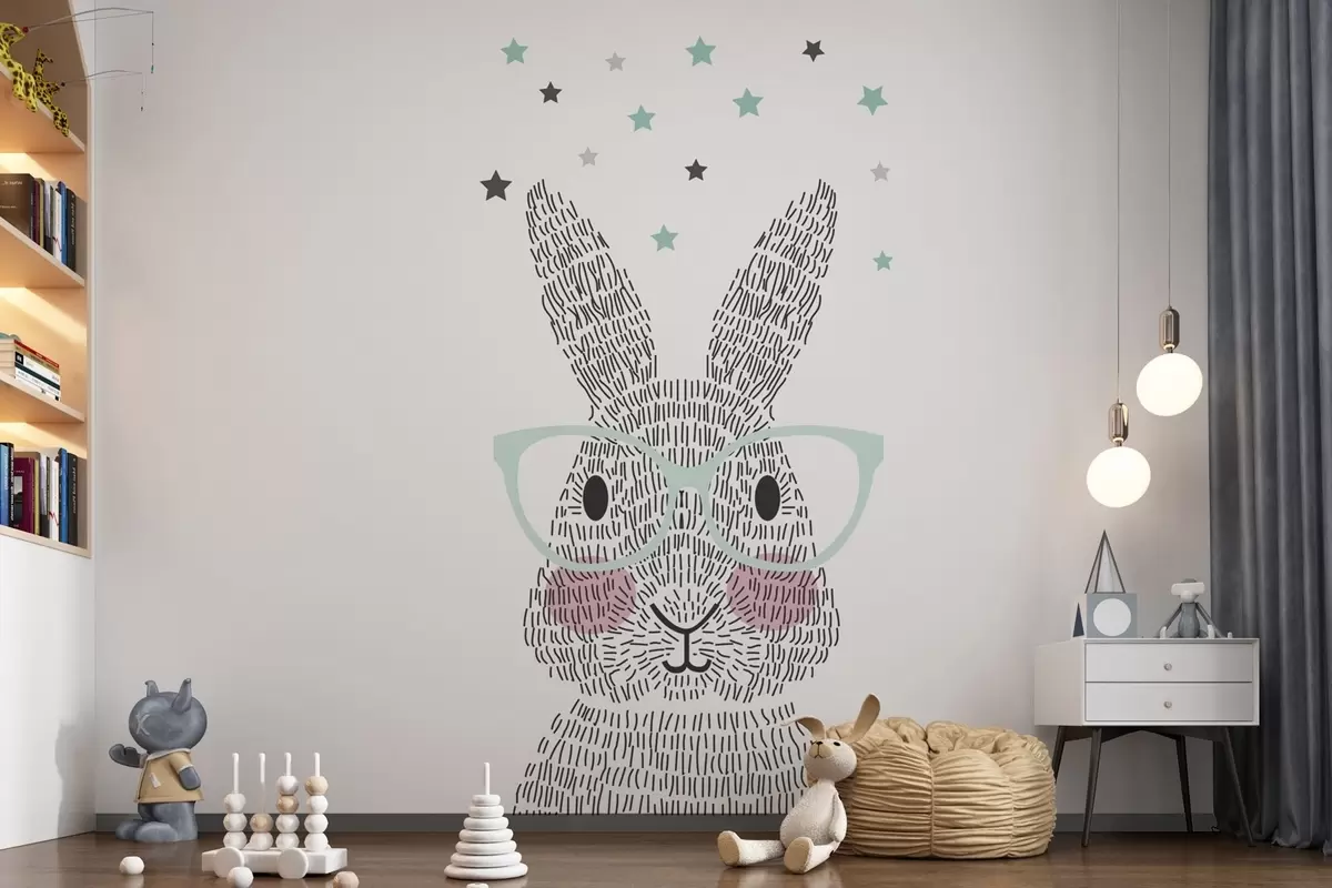 Murais de parede Coelhinho inteligente com óculos elegantes Nr. w00159