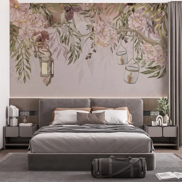 Murais de parede Flores delicadas e galhos verdes pendurados para baixo Nr. w00384