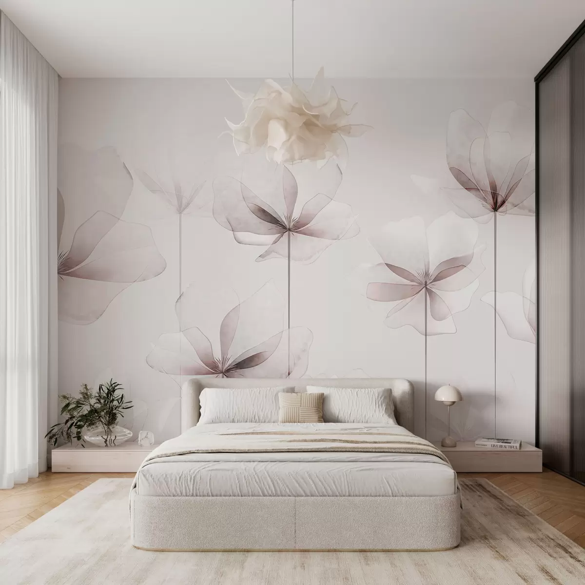 Murais de parede Flores suaves e transparentes tendência de estilo moderno art déco 3D Nr. w00895