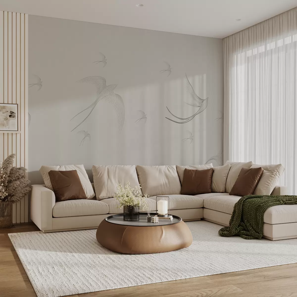 Murais de parede Andorinhas lineares em um fundo bege Nr. w01264v1