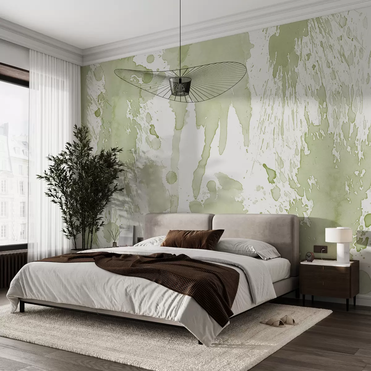 Murais de parede Salpicos de aquarela, abstração de desenho de tinta, cor verde Nr. w01285
