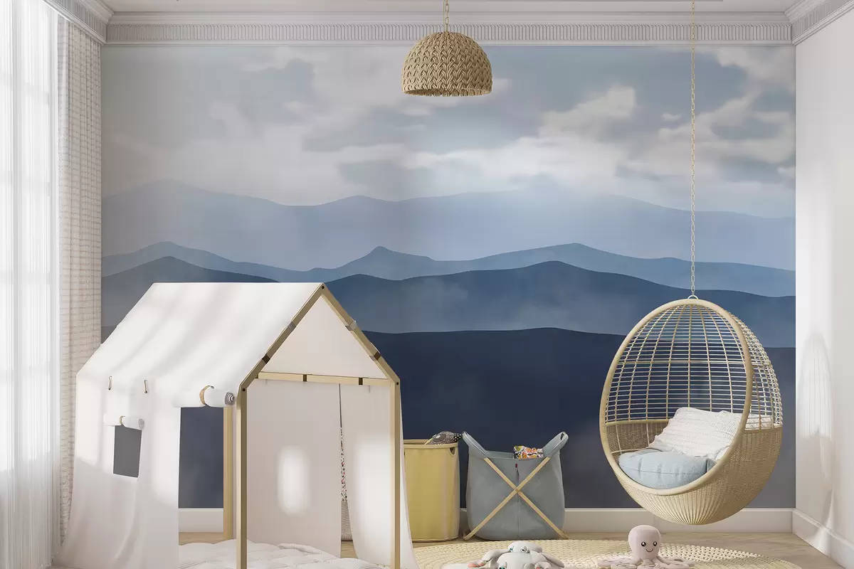 Murais de parede Paisagem montanhosa minimalista enevoada com colinas e céu nublado Nr. w01317