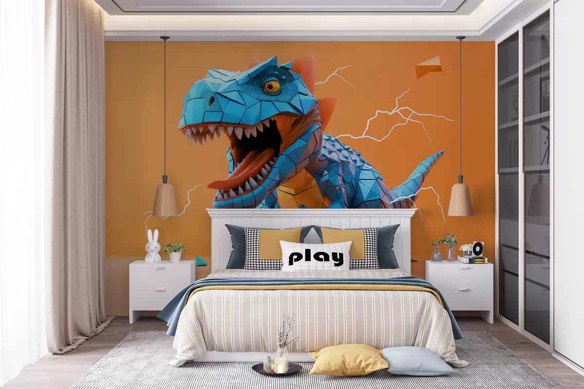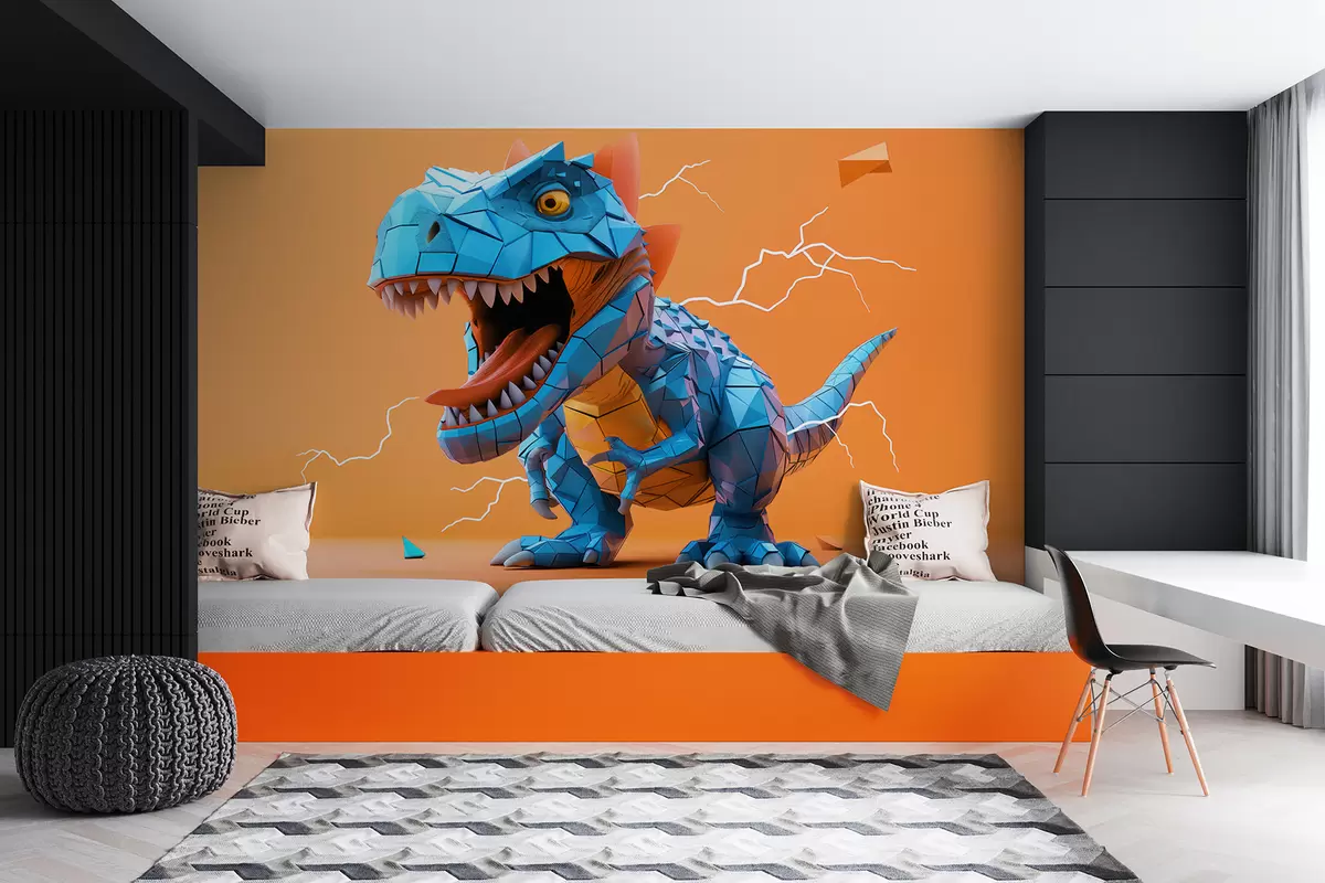 Murais de parede Dinossauro feroz com um raio nas cores amarelo e azul Nr. w01333v1