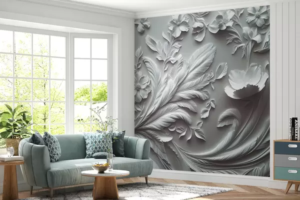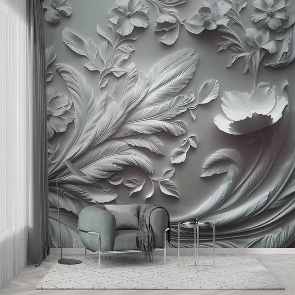 Murais de parede Flores e folhas requintadas em tons de cinza Nr. w01356v2