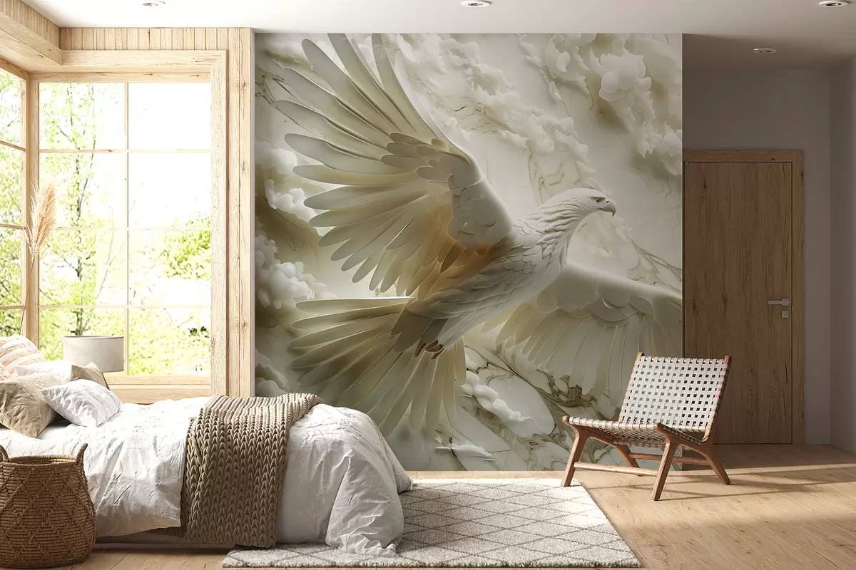 Murais de parede Águia branca 3D em um fundo de nuvens e mármore Nr. w01477