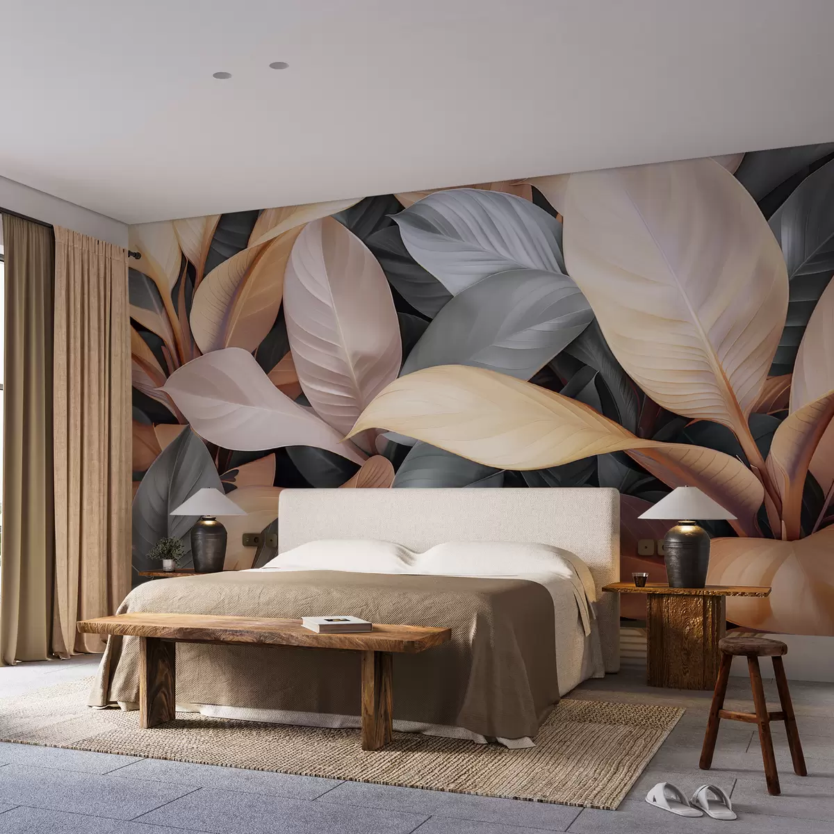 Murais de parede Grandes folhas tropicais em tons de azul e bege Nr. w01587v2