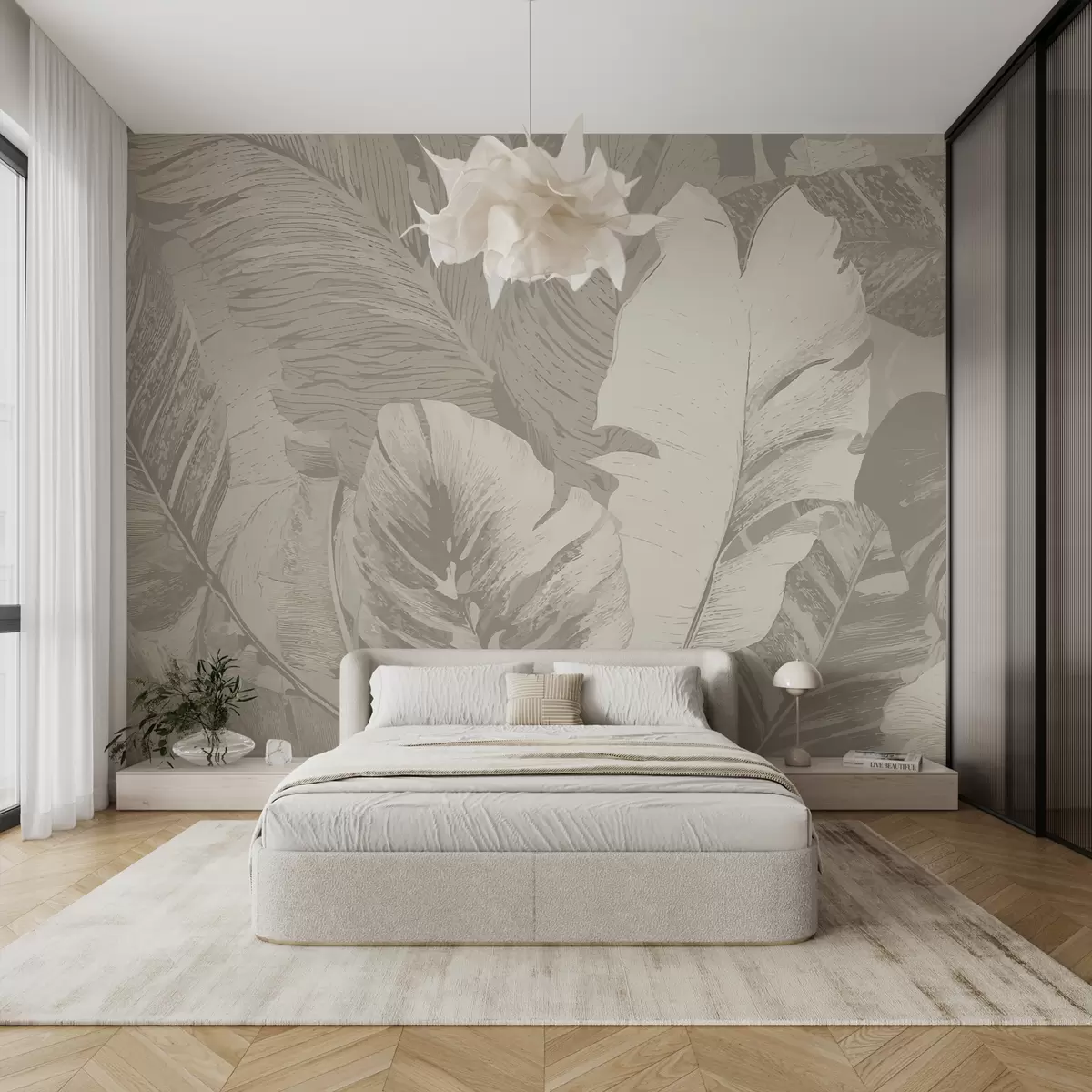 Murais de parede Folhas de palmeira grandes em tons pastel Nr. w01761