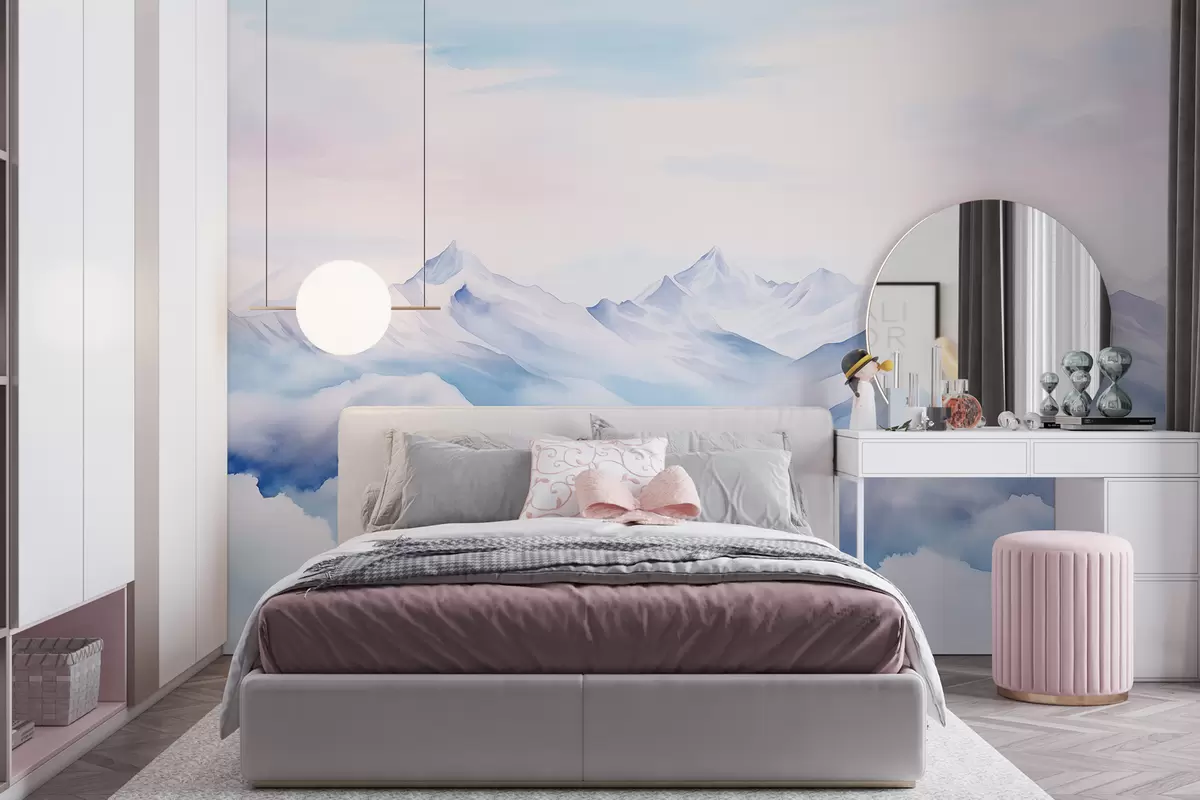 Murais de parede Paisagem de montanhas, aguarela, cores púrpura suaves Nr. w01787