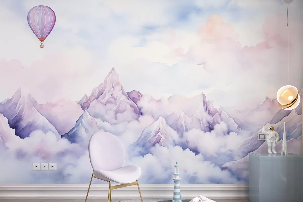 Murais de parede Balão de ar nas montanhas, aguarela, cores suaves e etéreas Nr. w01789