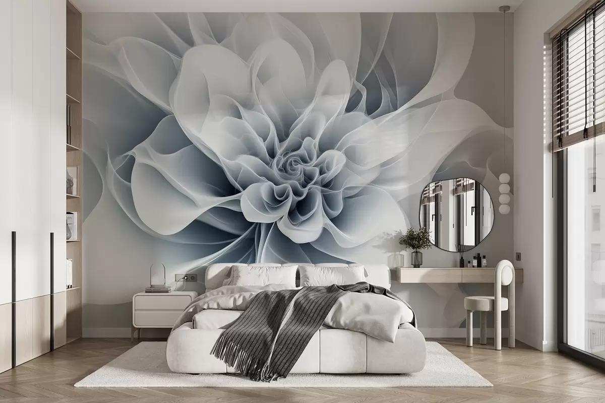 Murais de parede Imagem abstrata elegante de uma flor com linhas suaves em azul Nr. w01853