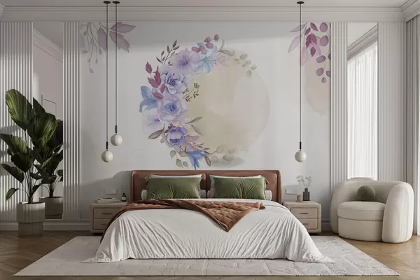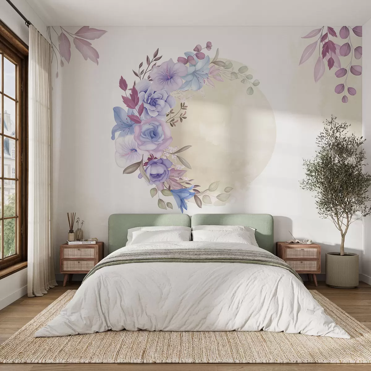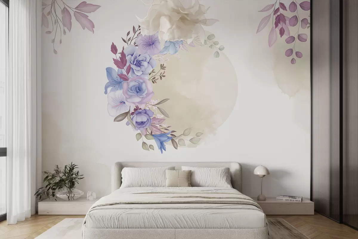 Murais de parede Flores delicadas em forma de crescente em estilo aguarela com manchas bege Nr. w01874
