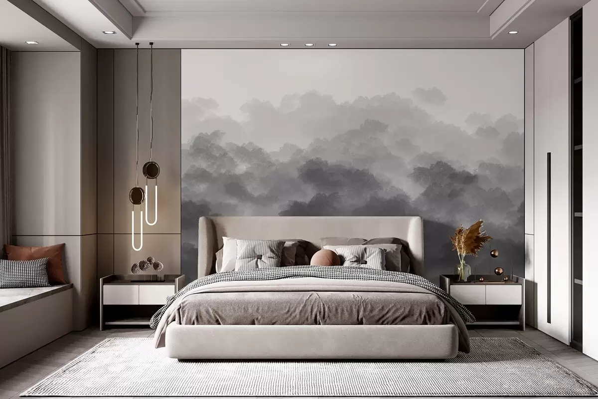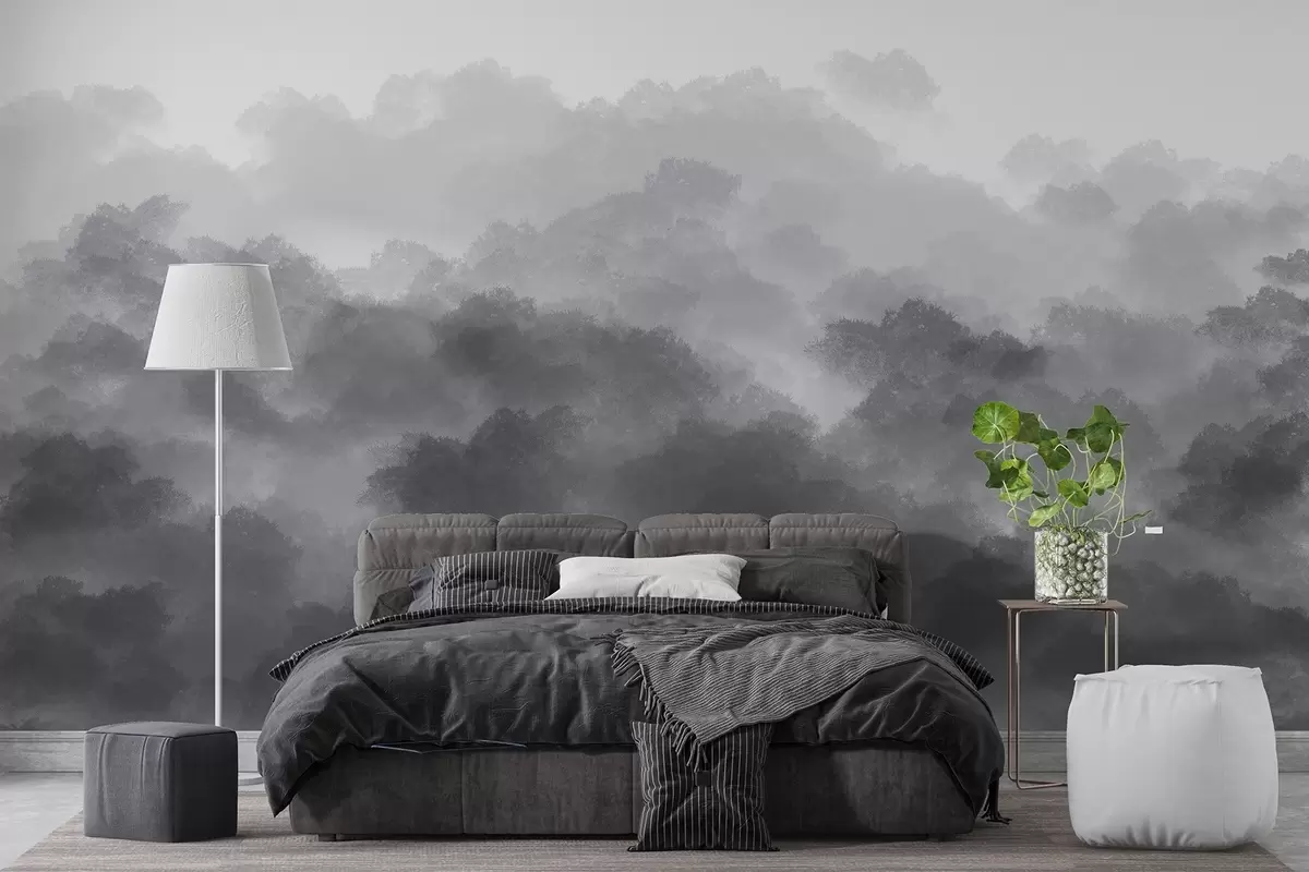 murais de parede Floresta no nevoeiro, paisagens naturais, cor cinzenta w01880v3