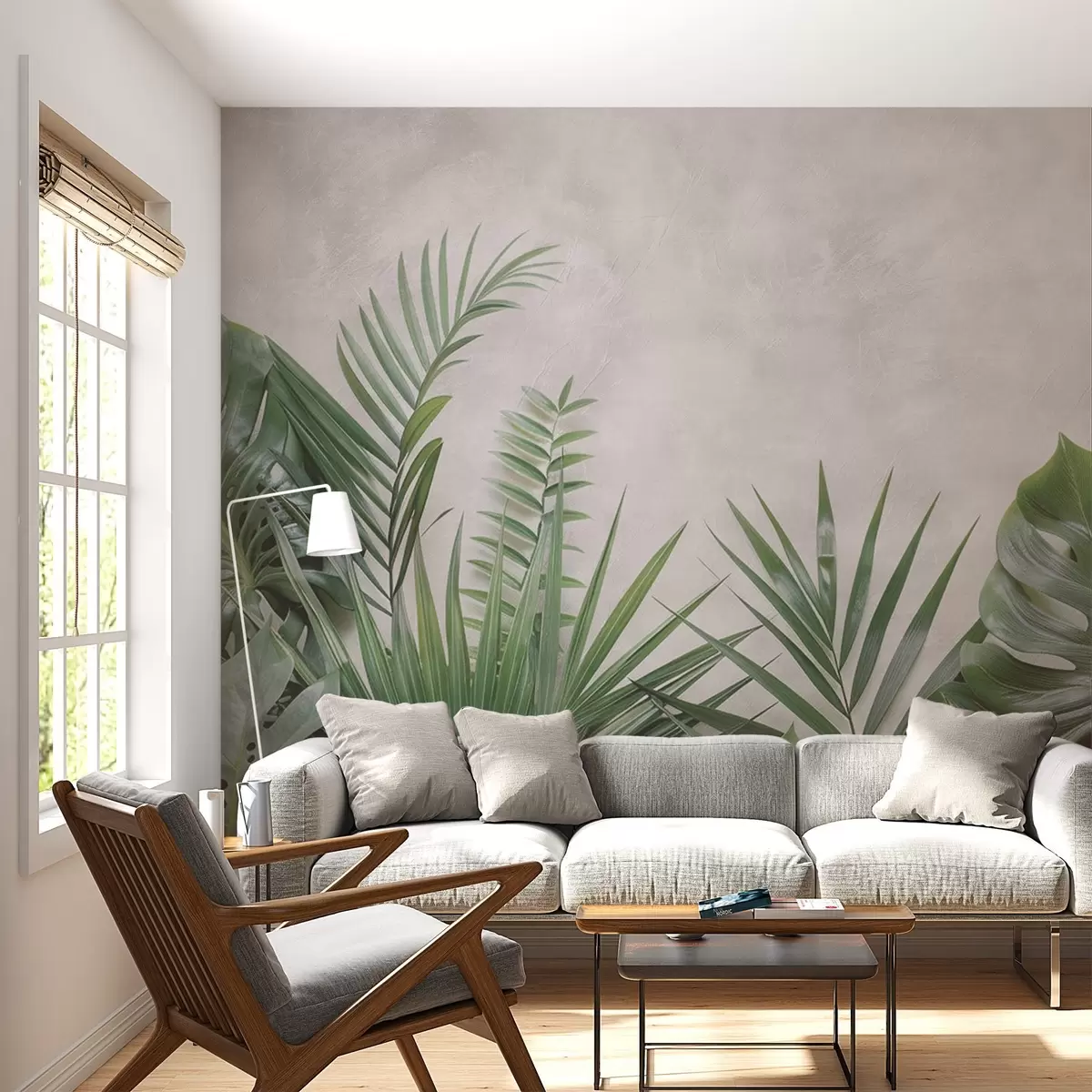 murais de parede Arbustos tropicais sobre um fundo de betão claro w01898