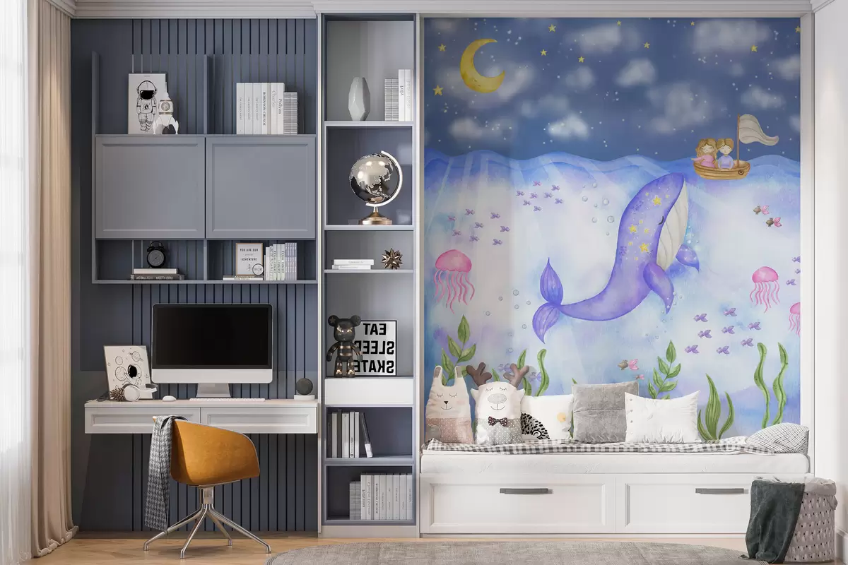 Murais de parede Baleia nada sob uma noite estrelada Nr. w01965