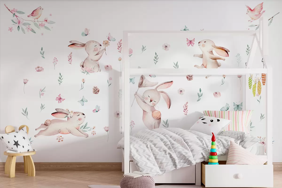 Murais de parede Coelhinhos de contos de fadas em flores Nr. w02025