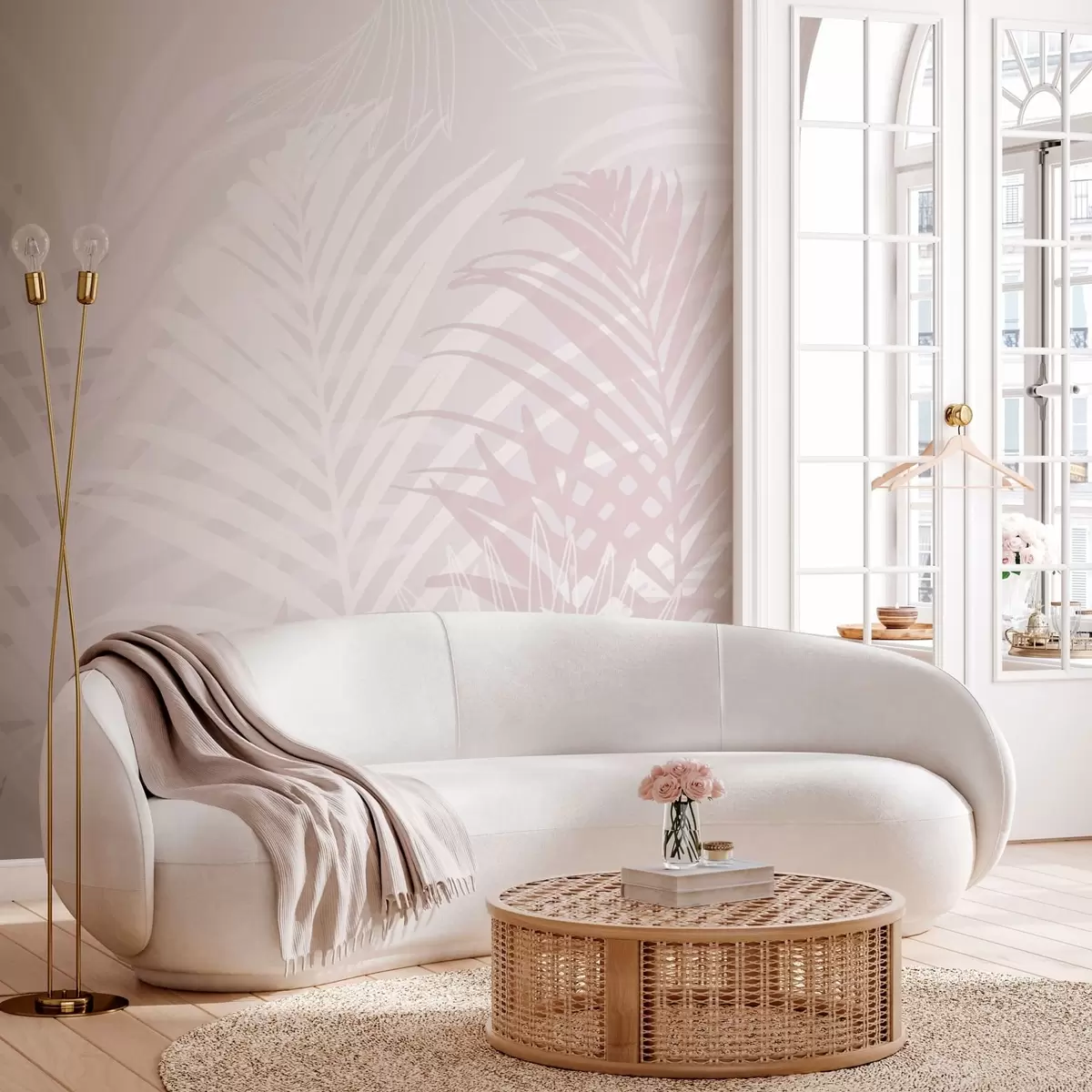 Murais de parede Folhas tropicais na moda cor-de-rosa Nr. w02026v4