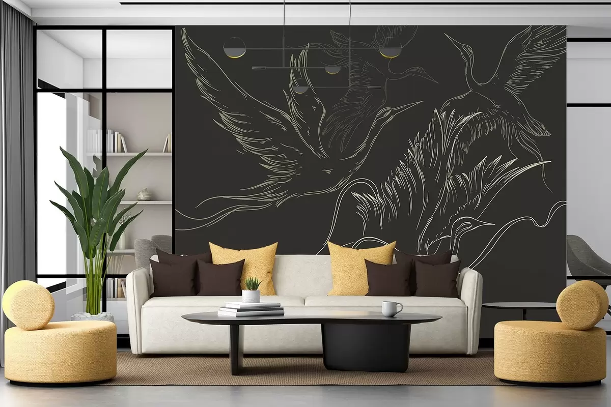 Murais de parede Pássaros a voar, minimalismo, arte de linhas, natureza, fundo escuro Nr. w02061v3