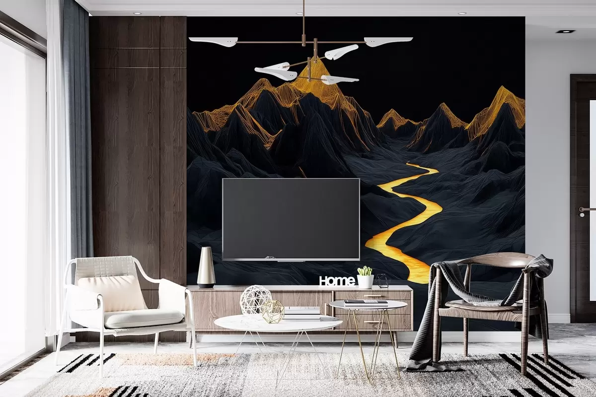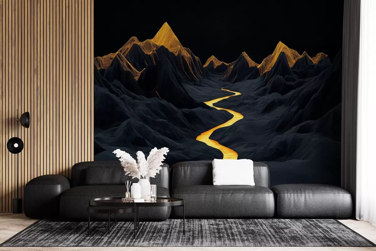 Murais de parede Paisagem poligonal negra e um rio entre as montanhas Nr. w02063