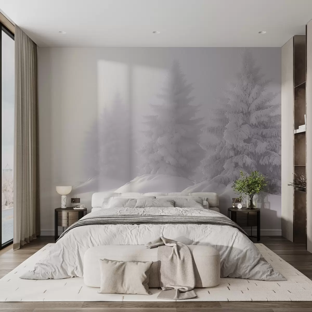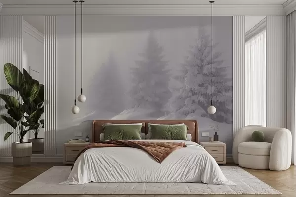 Murais de parede Abetos nevados na solidão de uma manhã de nevoeiro Nr. w02065