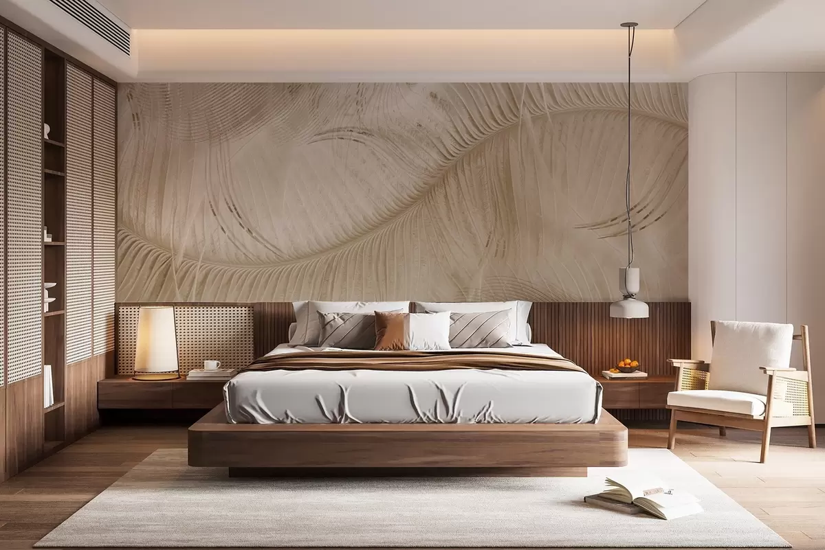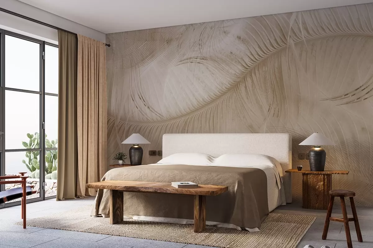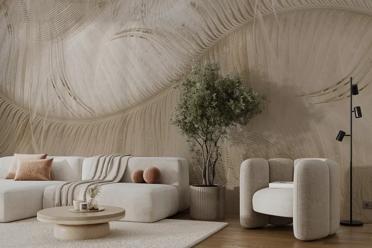 Murais de parede Textura leve de penas em tons de bege Nr. w02072v1